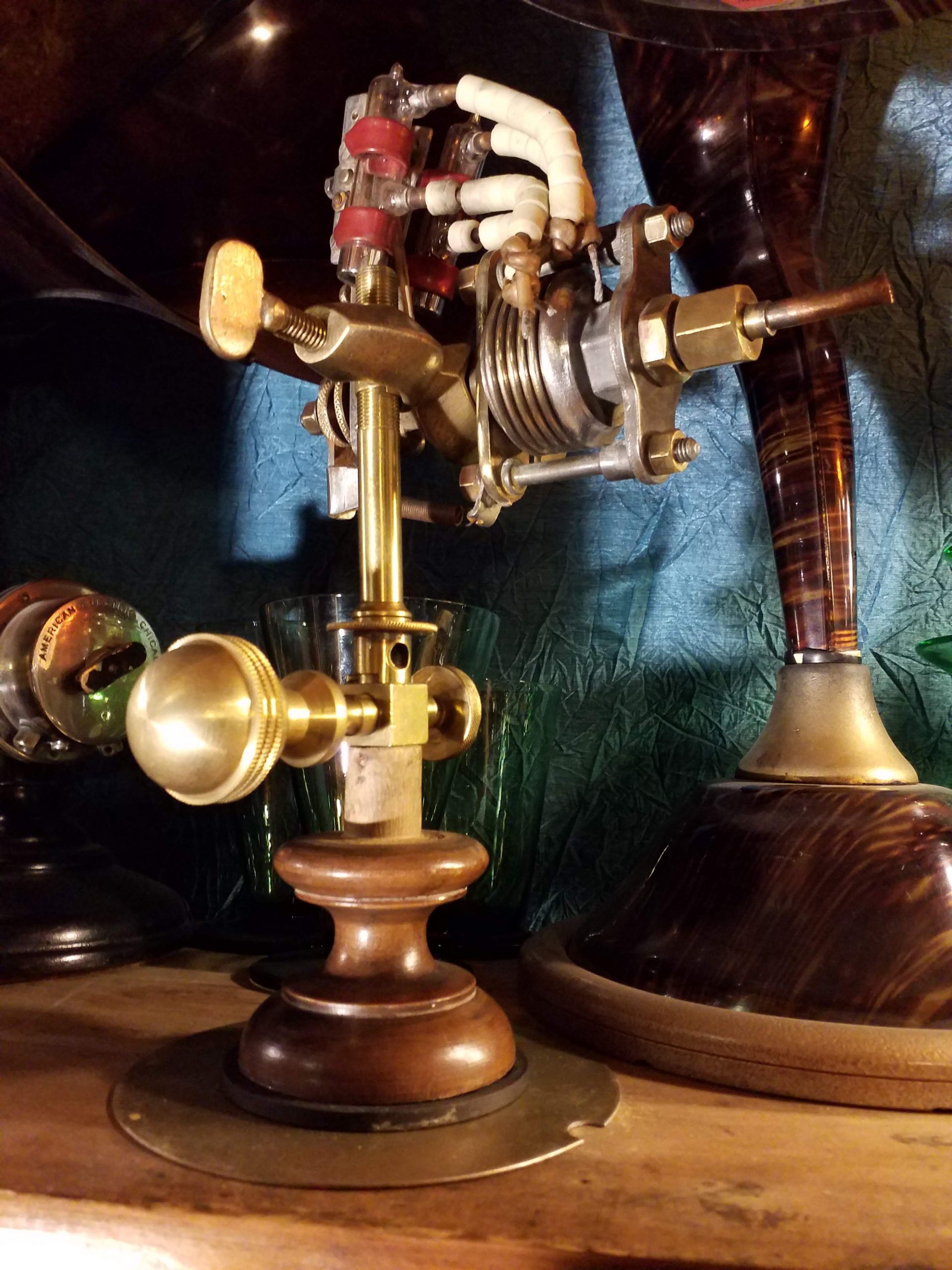 interruttore al mercurio in ottone con pressostato in rame, bellissimo con supporto di di sostegno in ottone.