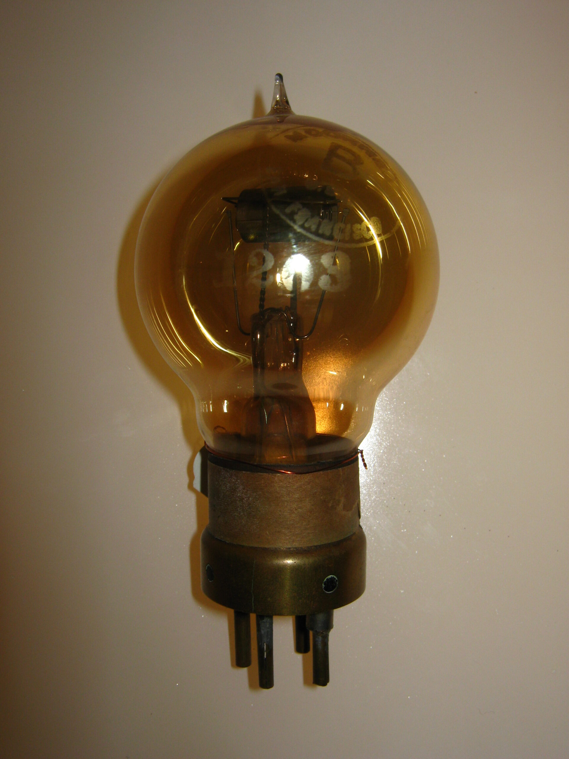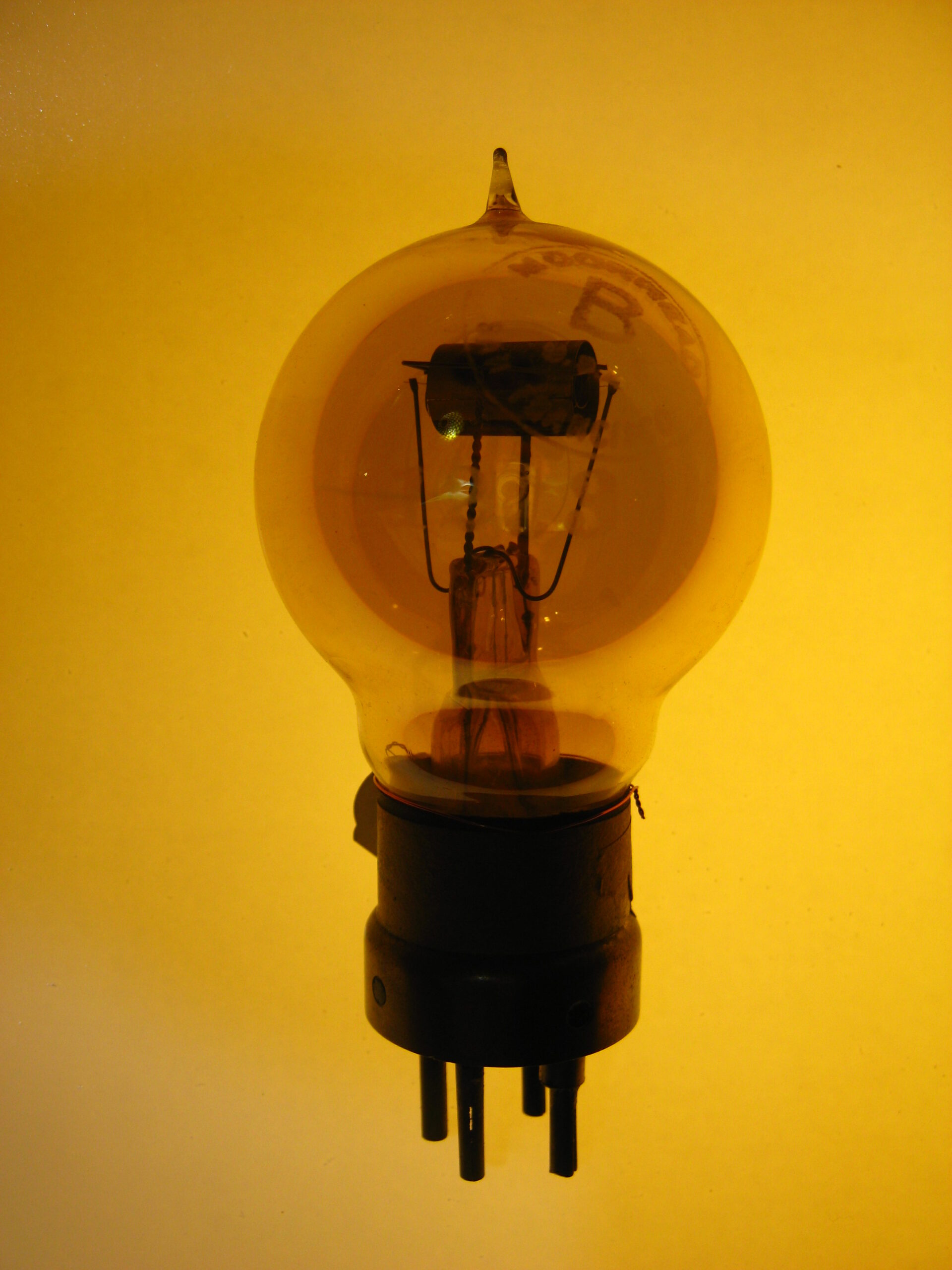 Valvola triodo Mhoorehead USA, tipo R europeo. Ghetter giallo oro al fosforo. 200/250/300