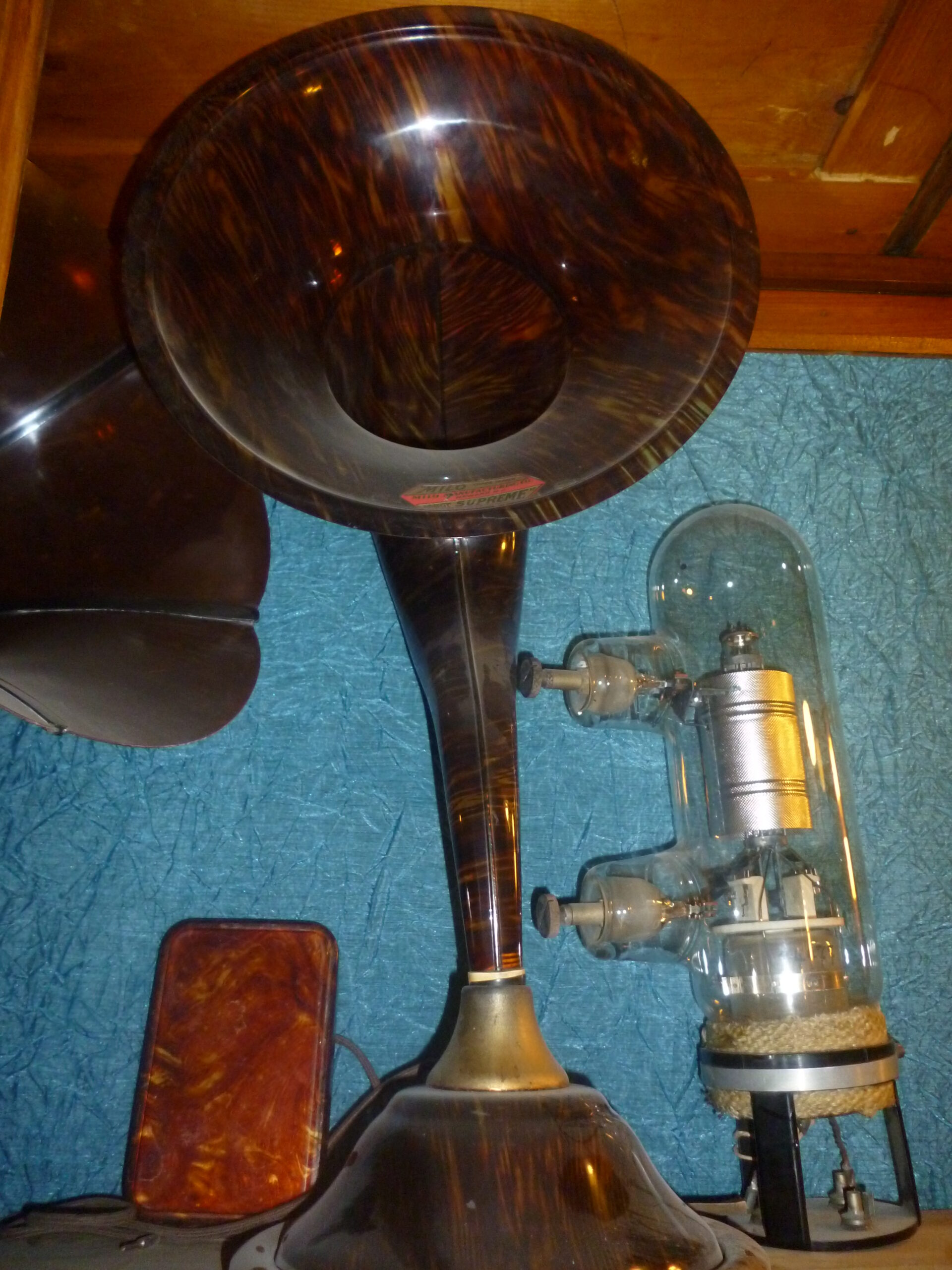 Altoparlante americano in celluloide tartaruga marca MILO horn speaker . 800/1000/1400 Valore: 1000 Marca: Milo Rarità: alta