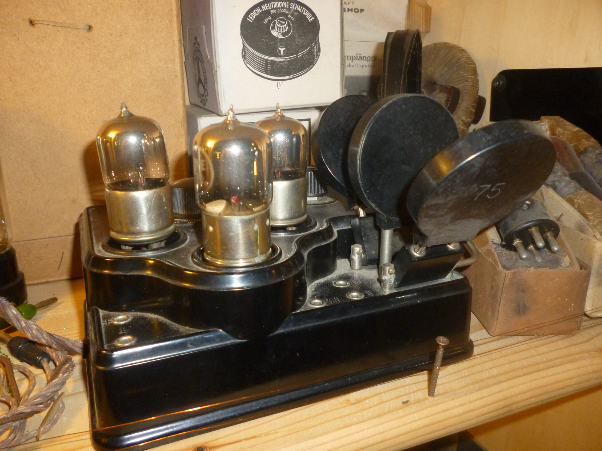 Apparato radio a 3 valvole tedesco tipo Brandt, bakelite nera, ottime condizoni. Valore: 500 Marca: Brandt Rarità: media