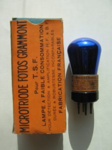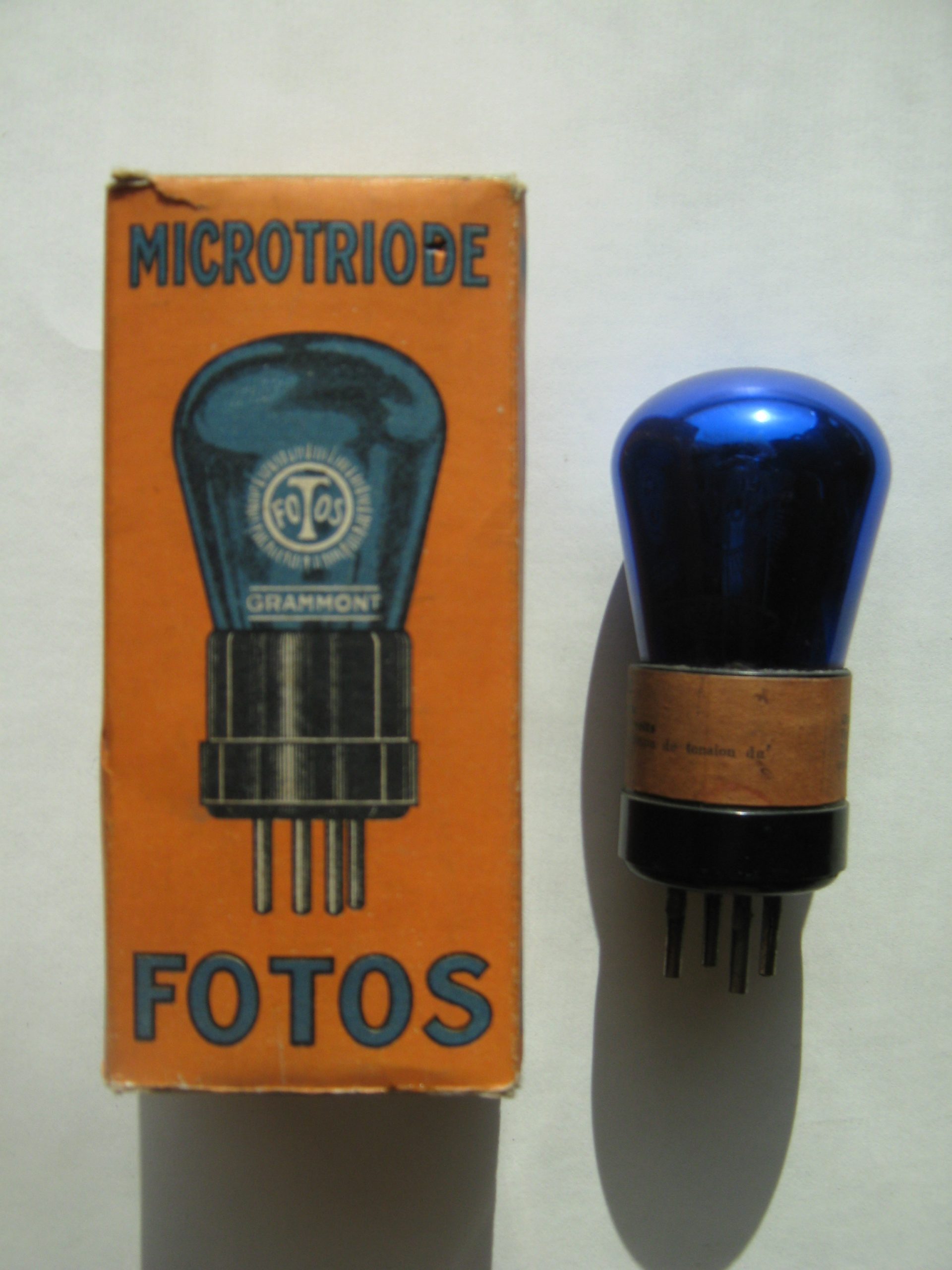 Microtriode Fotos Grammont pour TSF, lampe a flebile consommation, pour detector e amplificationHF e BF