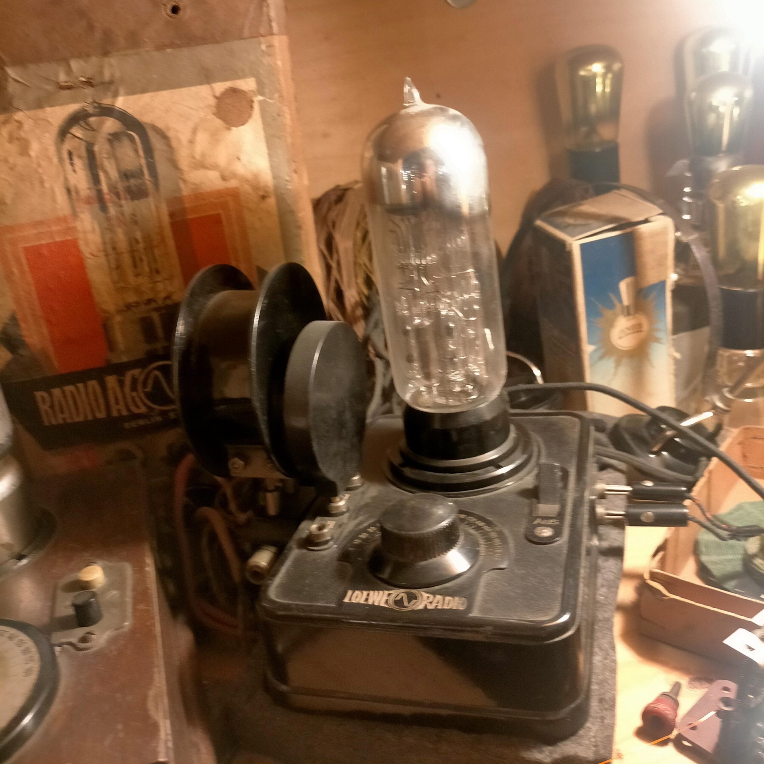 Apparato ricevente tipo Loewe 333 con scafo in bakelite valvola 3nf in vetro trasparente. 3NFB 800/1000/1200 Valore: 1000 Marca: Loewe Rarità: media