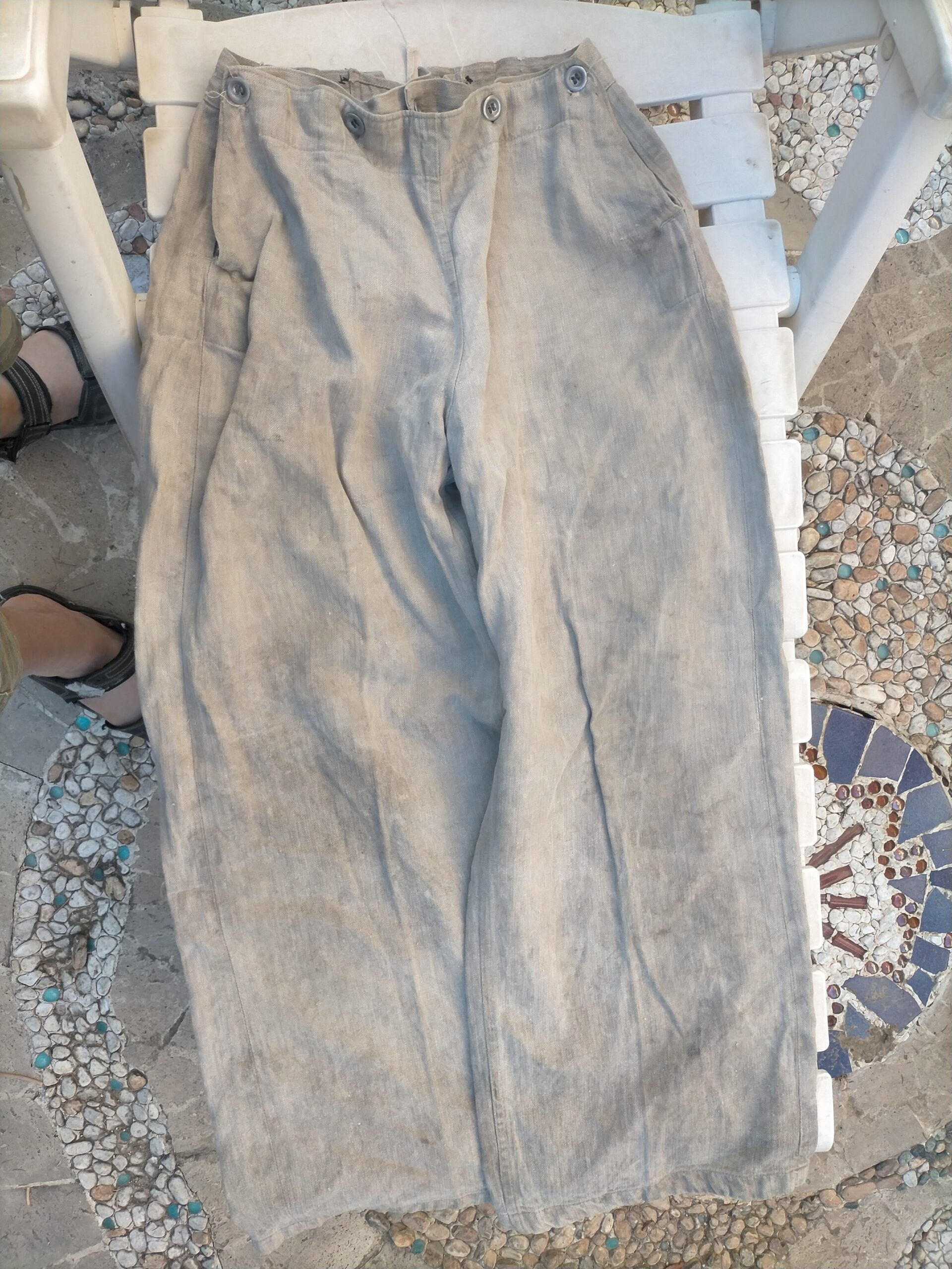 pantalone bianco (ormai grigio) da fatica, in cotone, tedesco seconda guerra mondiale. Mediocri condizioni generali 40/60/90 Valore: 60 Rarità: bassa