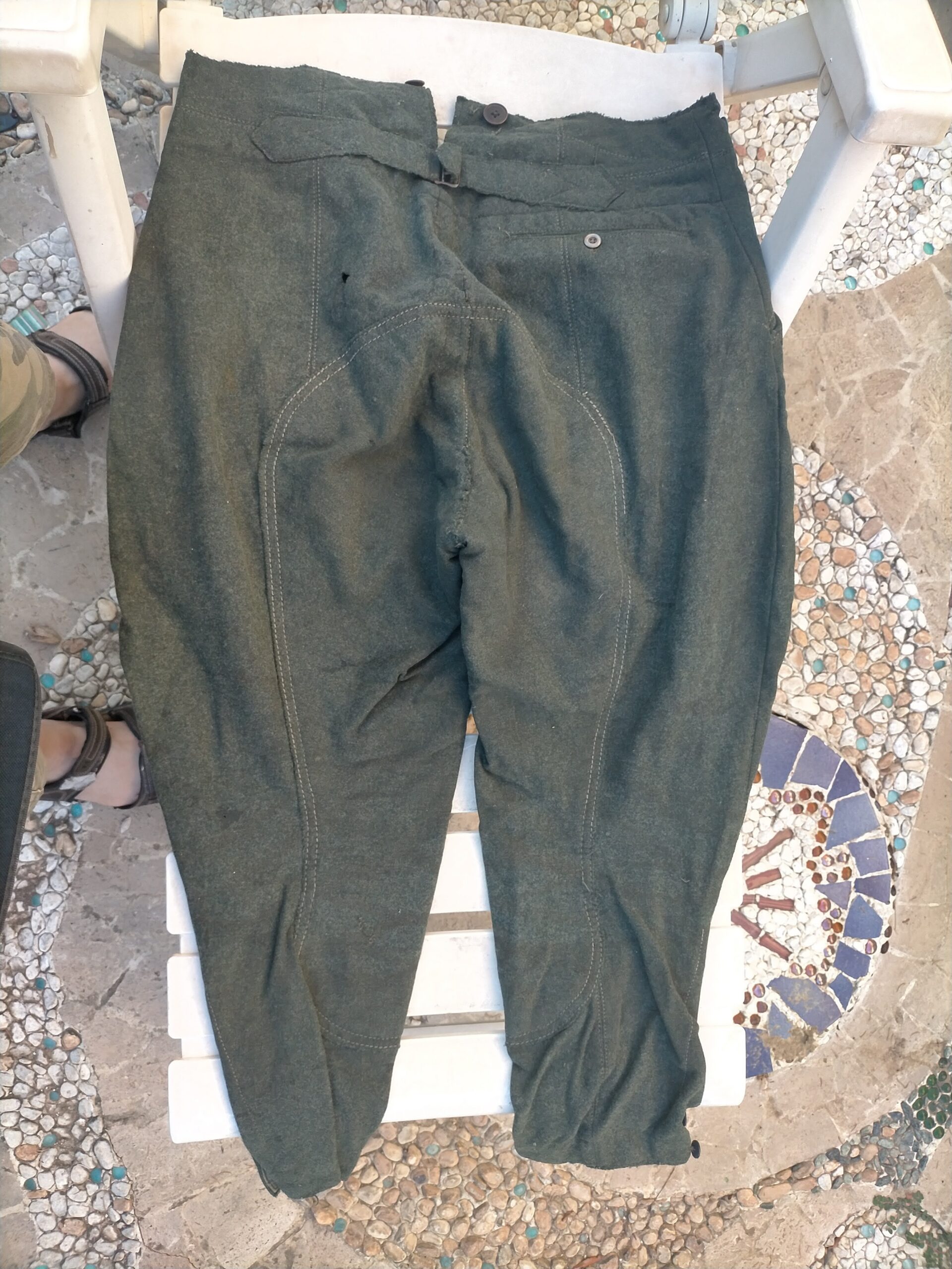 Pantaloni in lana verde, da ufficiale tedesco seconda guerra mondiale . condizioni mediocri, alcune toppe originali, nel complesso belli