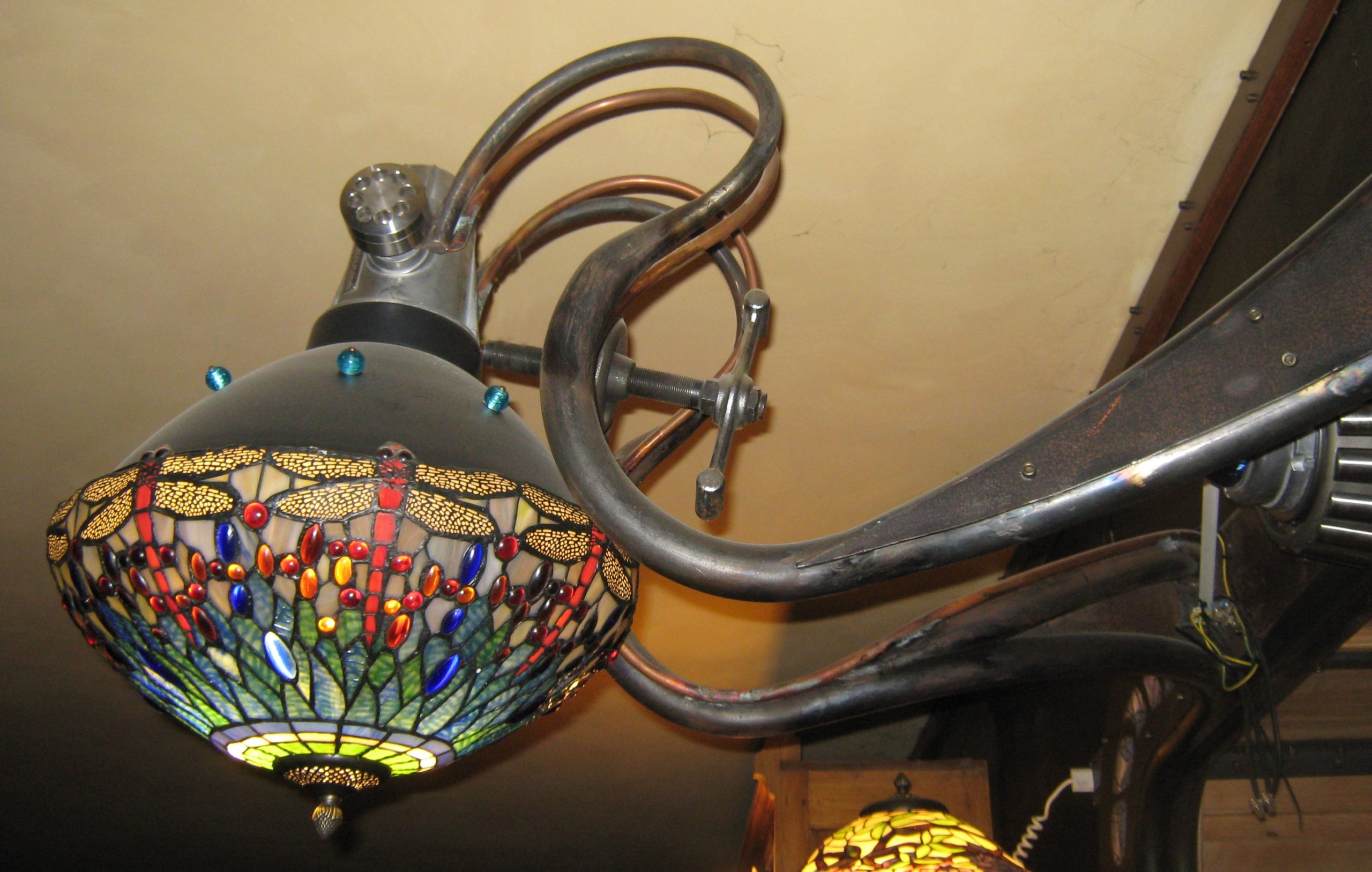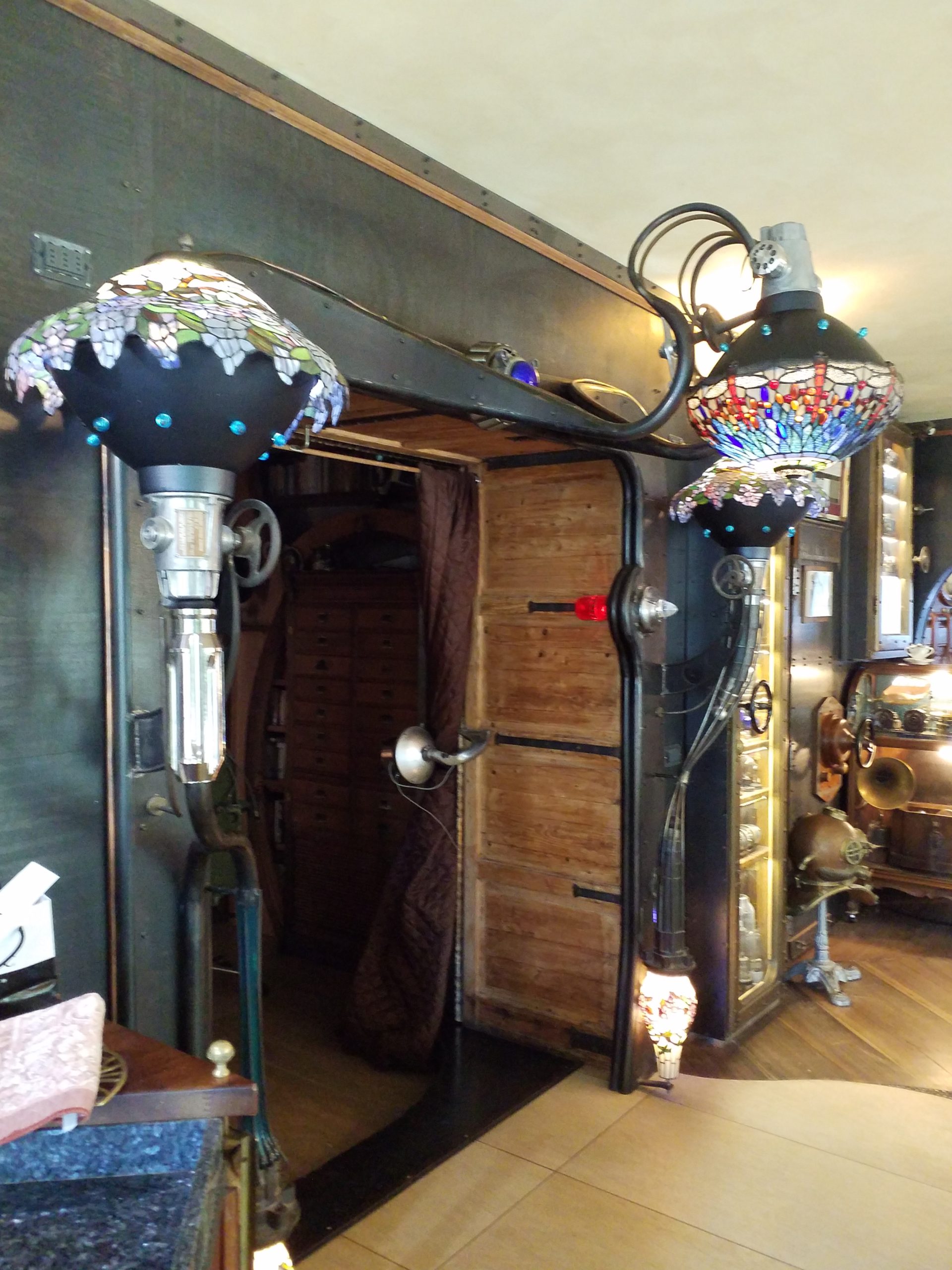 Realizzato in metallo con una possibilità infinita di combinazioni di materiali e di forme. Porta d’oriente è il nostro progetto che consente ad una normale porta, di diventare una scultura affascinante ed imponente nel tuo arredamento. In questo caso l’uso di acciaio, ottone e rame, permette di attenere un effetto impressionante. L’effetto è rafforzato da lampade stile Tiffany con inserti tecnologici di macchinari industriali e militari antichi che contribuiscono a render magico questo componente di arredamento.