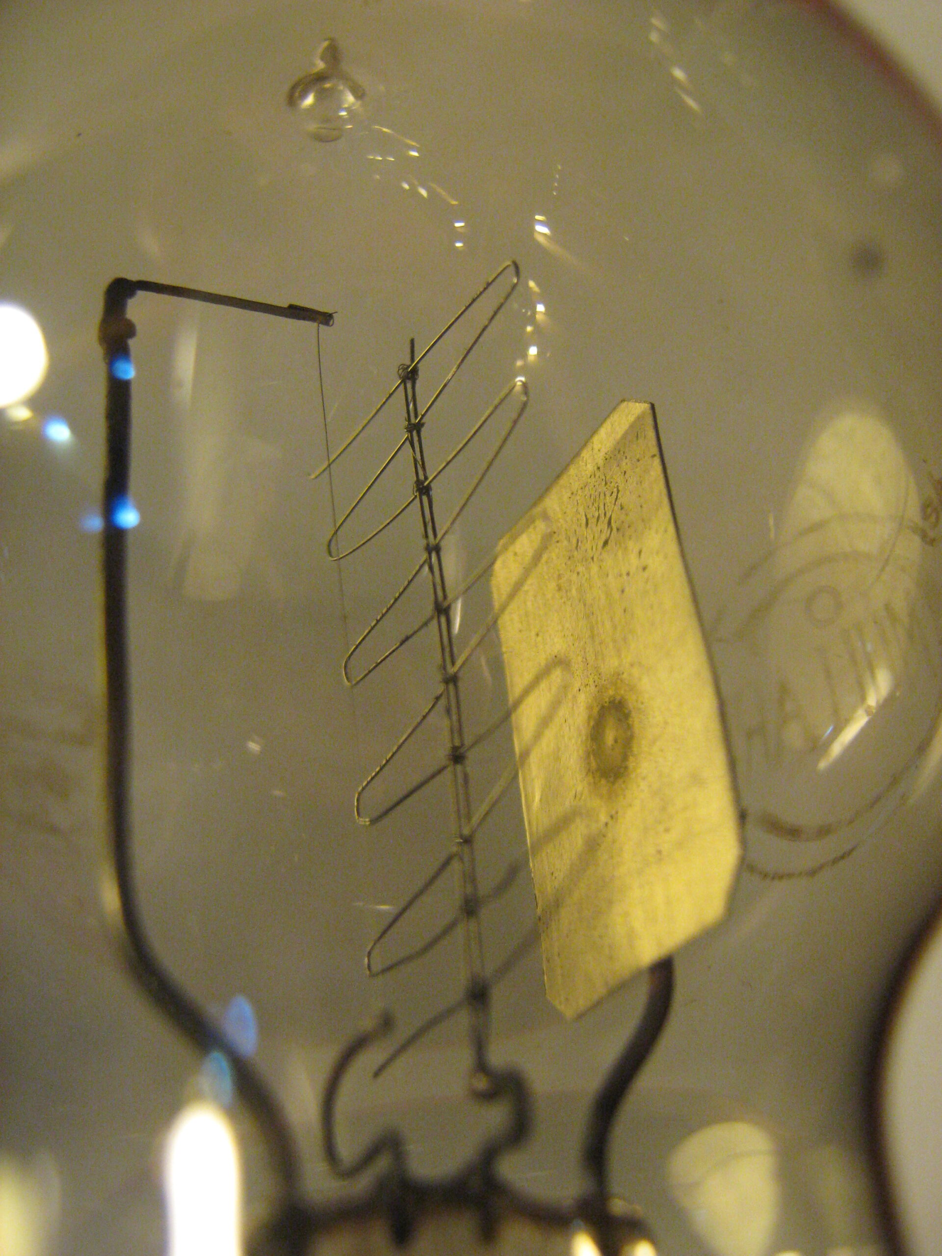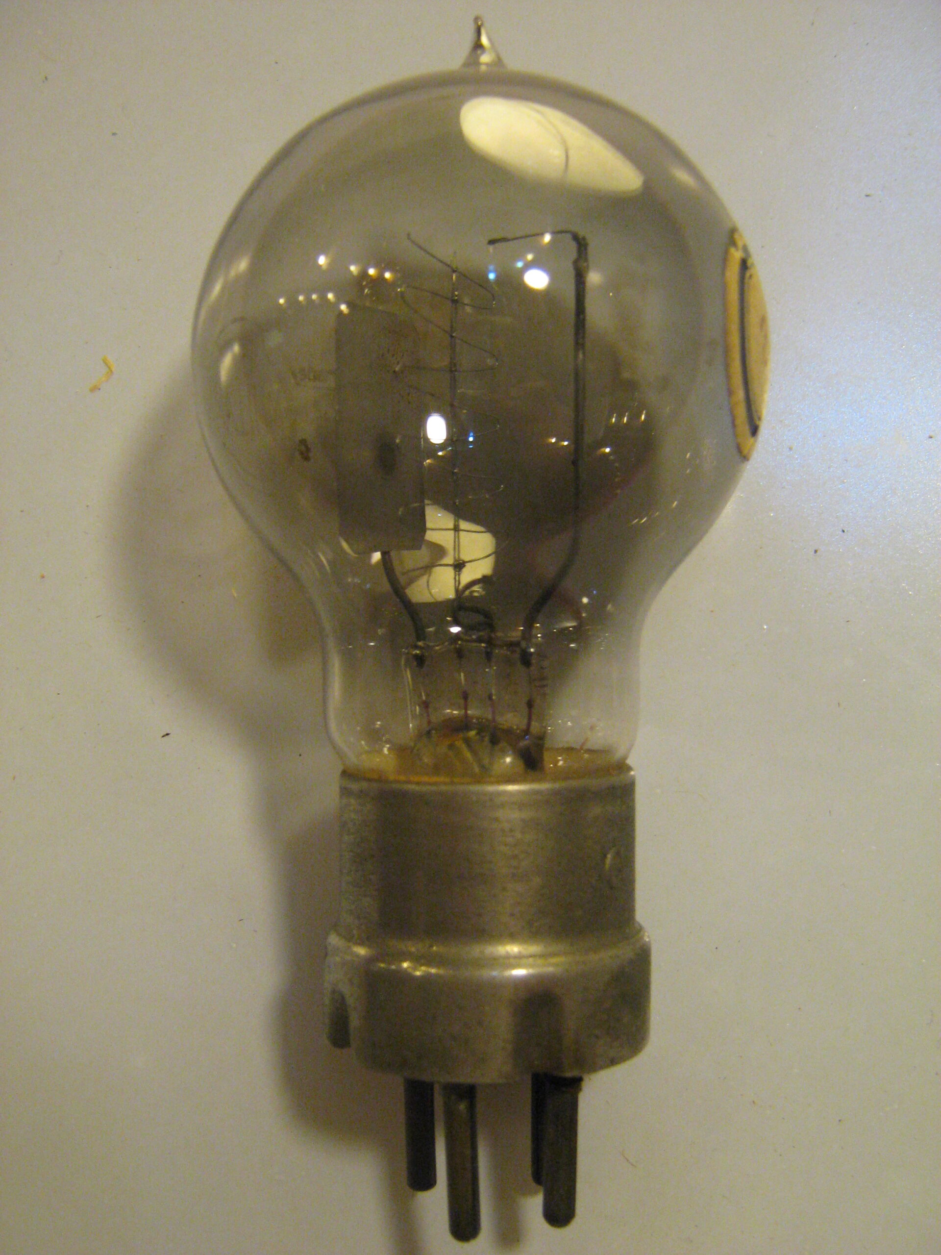 triodo tipo R di forma primitiva con struttura interna obsoleta fatta a mano.
