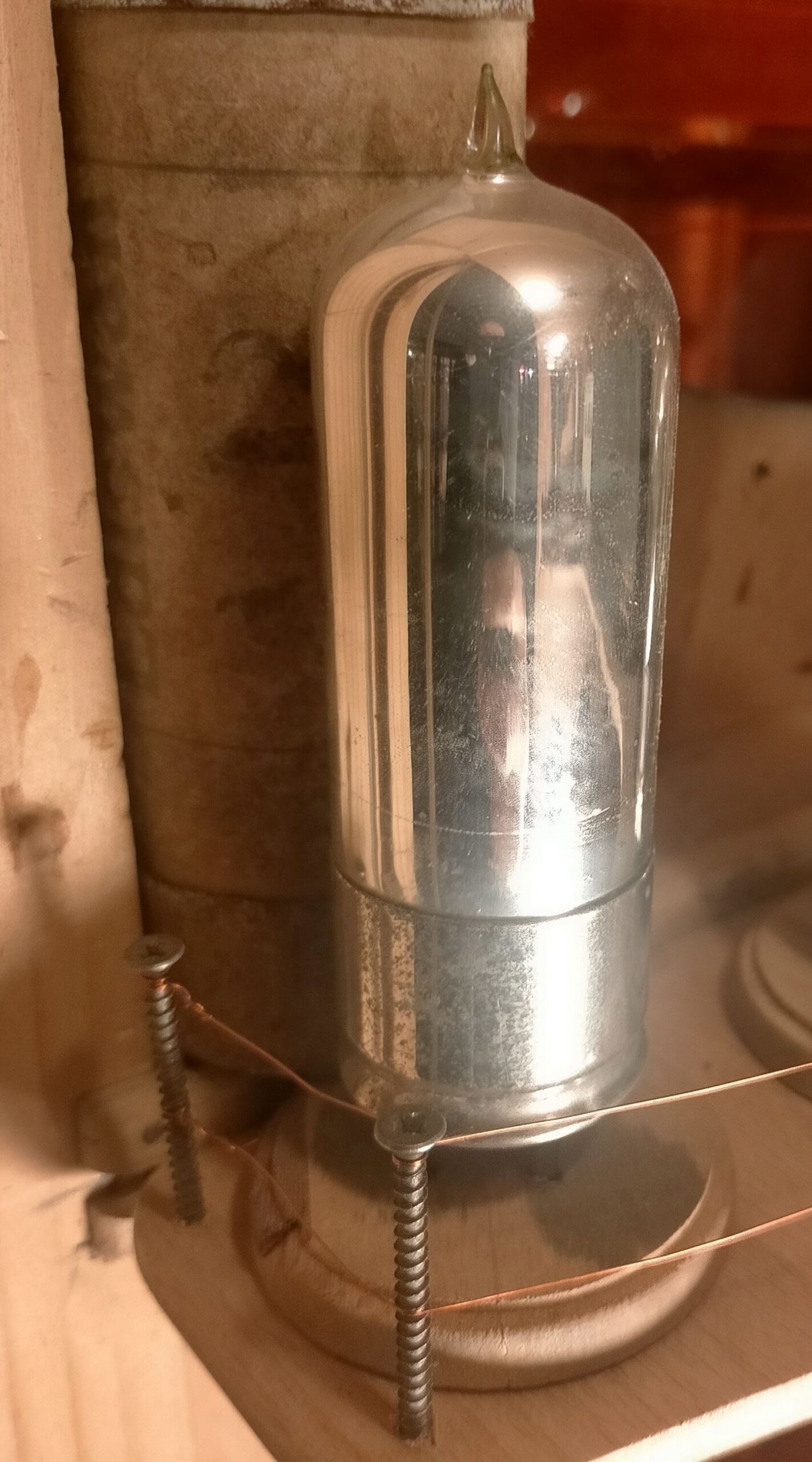 Valvole inglese, modello R anni 20, tubolare zoccolo in bakelite. produzione inglese primitiva, con pip. 90/100/150 Valore: 100 Scatola: si
